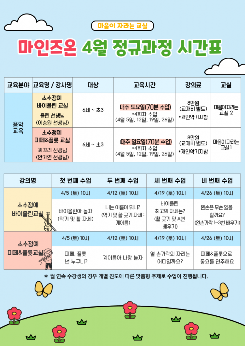 [ 마음이 자라는 교실 (단일과정) 4월 시간표 ]