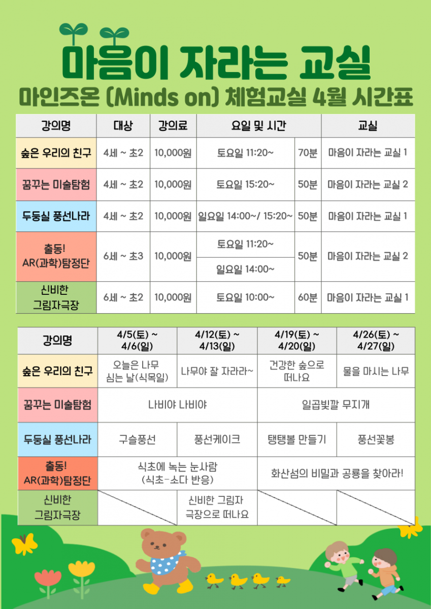 [꿈누리관] 마인즈 온(Minds On) 체험교육 시간표 (4/1~4/30)